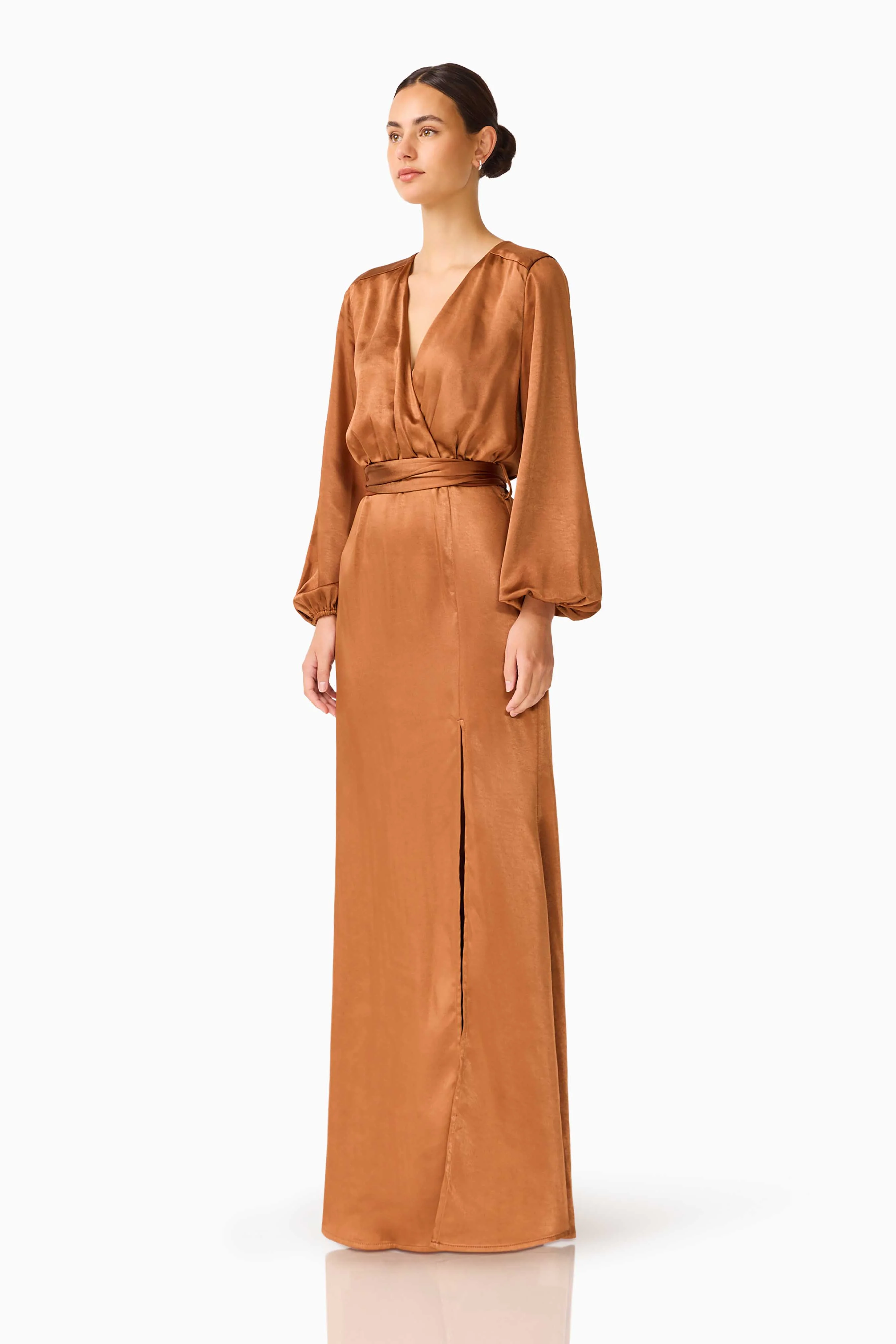 Kai Long Sleeve Maxi Dress in Toffee Brown