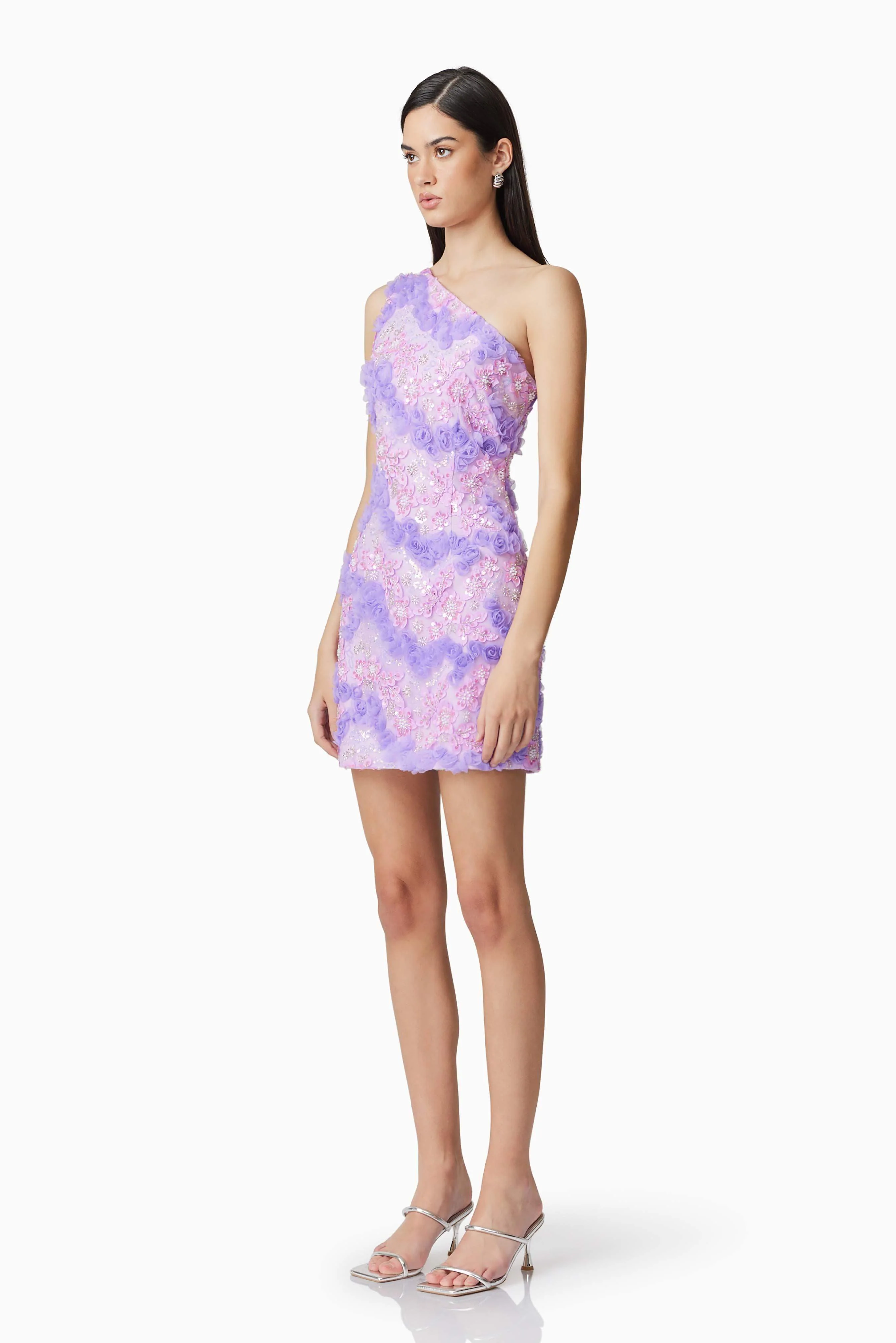 Vonni One Shoulder Mini Dress in Purple